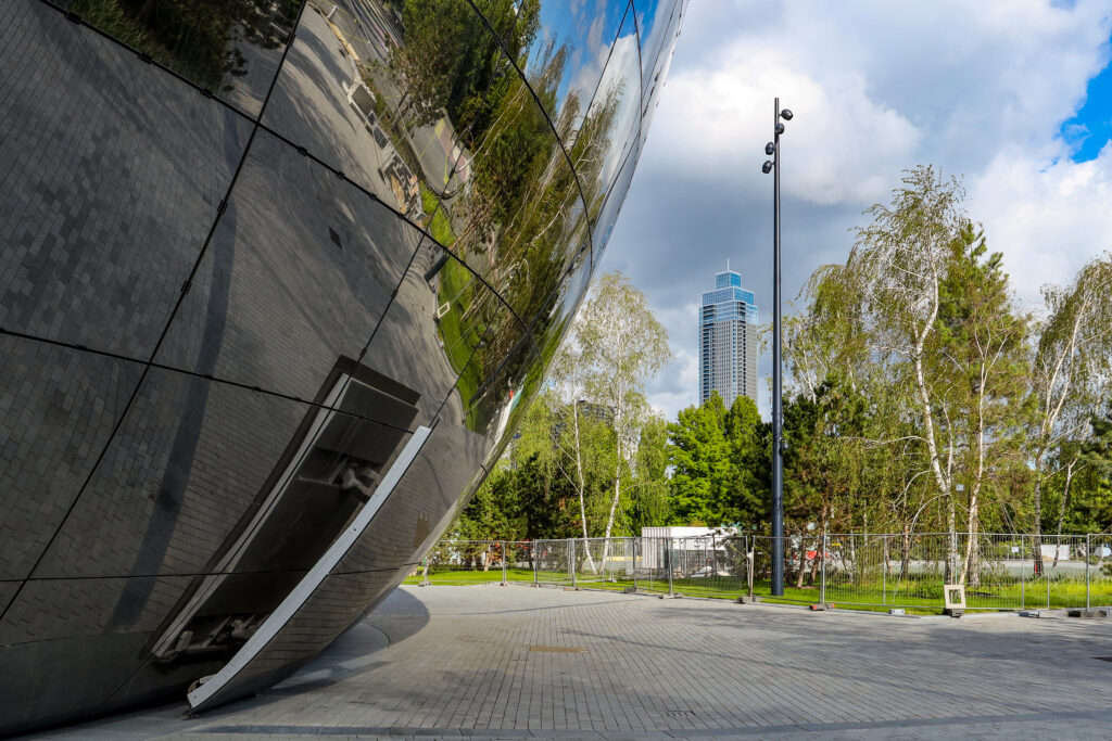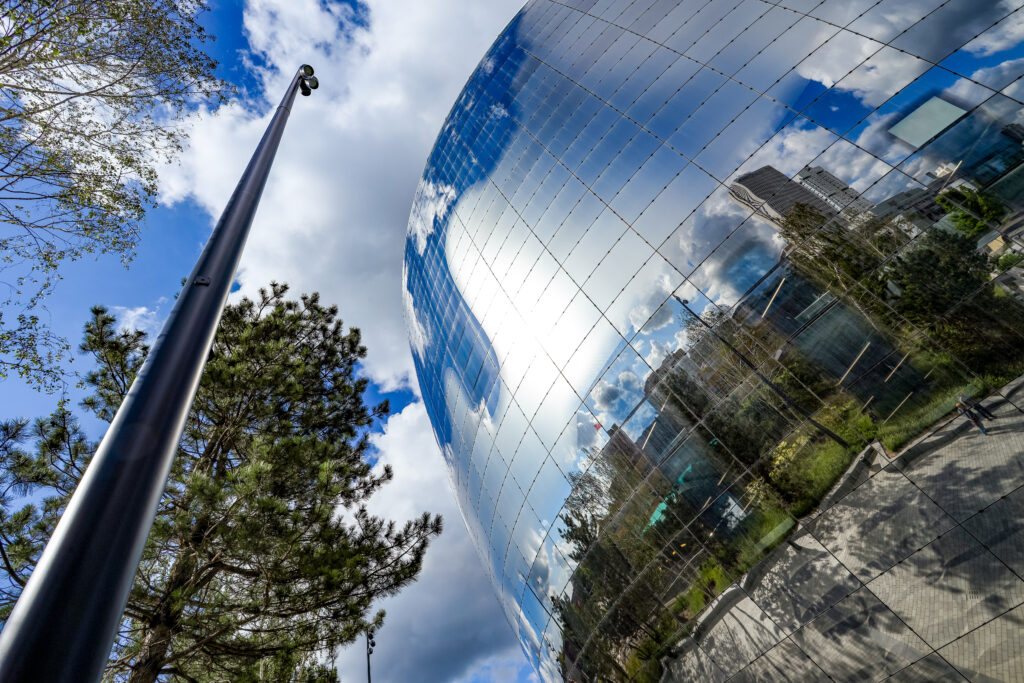 The site lighting relies on lighting poles fitted with ECLATEC’s XEON RGBW projectors, visible along pathways and open spaces around the building. Light structures movement, secures circulation and enhances the reflections of the mirrored façade while respecting the surrounding landscape. Carefully controlled lighting atmospheres support both cultural and everyday uses, transforming the public space into an immersive experience where architecture, nature and light interact. A night-time scenography designed for users and for the iconic identity of the site.